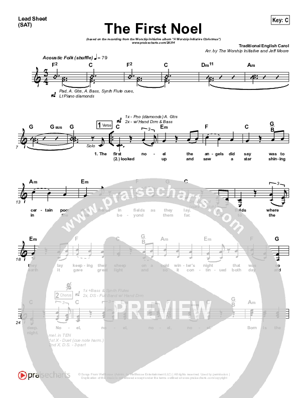 Download the sheet music for The First Noel by Shane & Shane / The Worship Initiative, from the album A Worship Initiative Christmas. This song was arranged by Jeff Moore in the key of B, C.