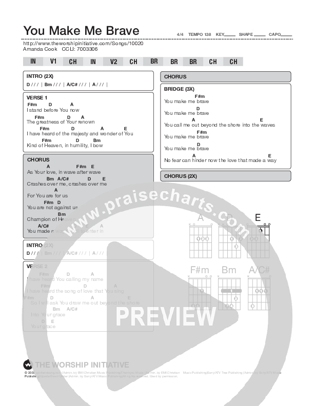 You Make Me Brave Chords PDF (Shane & Shane / The Worship Initiative)