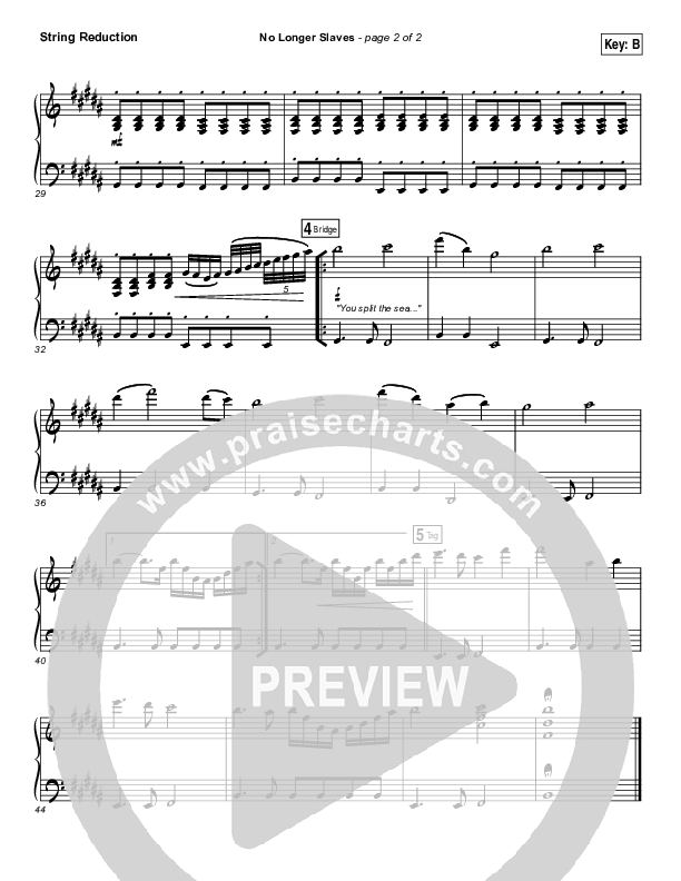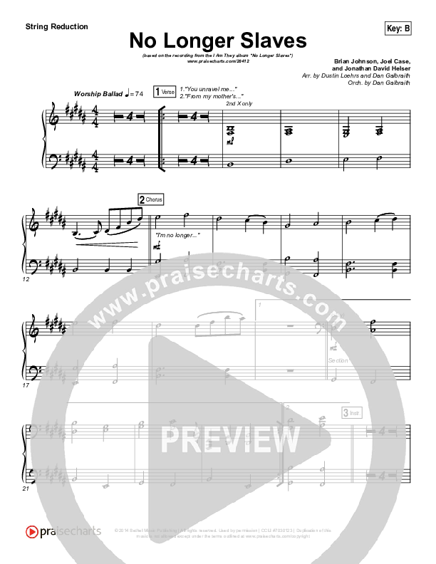Download the Orchestration string parts for No Longer Slaves by I Am They, from the album No Longer Slaves. This song was arranged by Dustin Loehrs / Daniel Galbraith in the key of B, Bb.