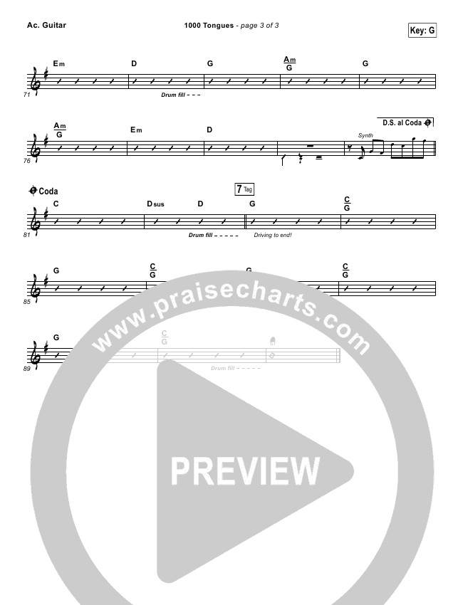 1000 Tongues Sheet Music PDF (Vertical Worship)