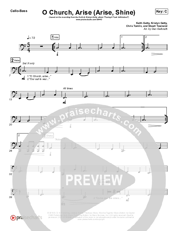 Download the Orchestration for O Church Arise (Arise Shine) by Keith & Kristyn Getty, from the album Facing A Task Unfinished. This song was arranged by Daniel Galbraith in the key of C, D.