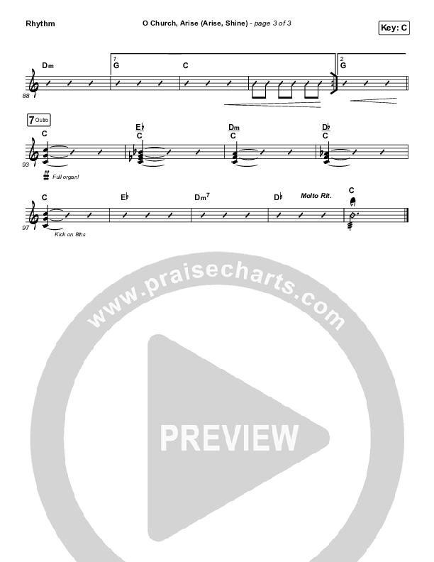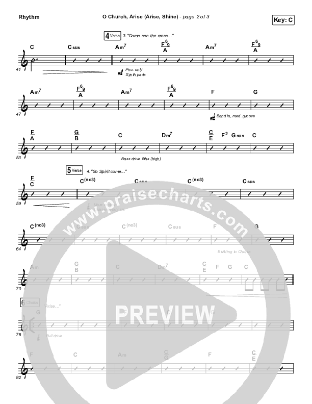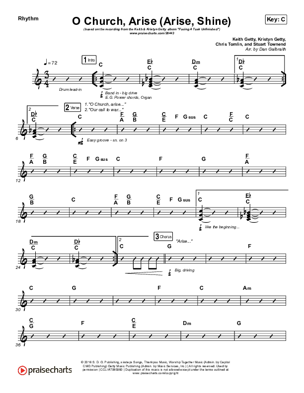 Download the Rhythm Chart for O Church Arise (Arise Shine) by Keith & Kristyn Getty, from the album Facing A Task Unfinished. This song was arranged by Daniel Galbraith in the key of C, D.