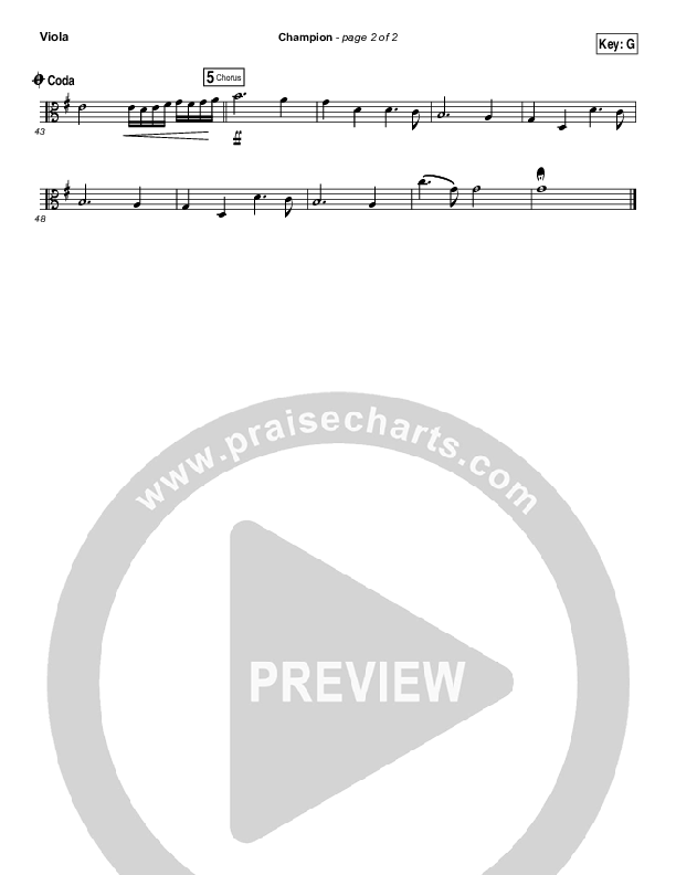 Download the Viola sheet music for Champion by Bryan & Katie Torwalt, from the album Champion. This song was arranged by Jeff Moore / Daniel Galbraith in the key of A, G.