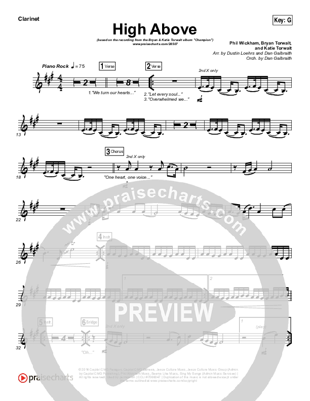 Download the Orchestration for High Above by Bryan & Katie Torwalt, from the album Champion. This song was arranged by Dustin Loehrs / Daniel Galbraith in the key of Ab, G.