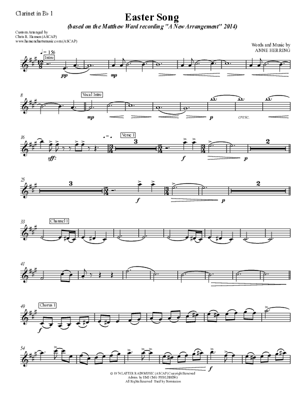 Download the Orchestration for Easter Song by Matthew Ward, from the album Easter Song A New Arrangement. This song was arranged by Chris Hansen in the key of G.