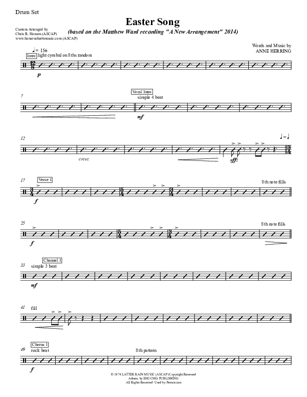 Download the Orchestration for Easter Song by Matthew Ward, from the album Easter Song A New Arrangement. This song was arranged by Chris Hansen in the key of G.