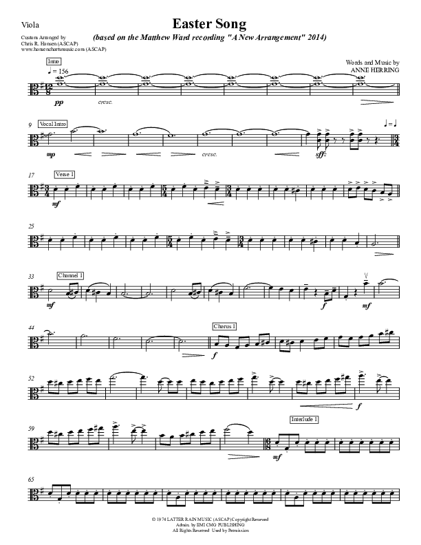 Download the Viola sheet music for Easter Song by Matthew Ward, from the album Easter Song A New Arrangement. This song was arranged by Chris Hansen in the key of G.