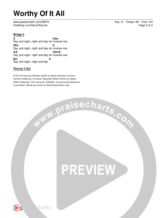 Worthy Of It All Chords PDF (Onething Live / David Brymer)