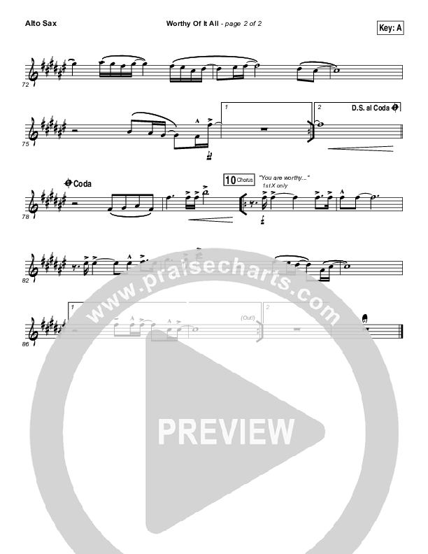 Worthy Of It All Alto Sax Sheet Music PDF (Onething Live / David Brymer)