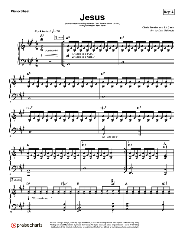 Download the Orchestration for Jesus by Chris Tomlin, from the album Never Lose Sight. This song was arranged by Daniel Galbraith in the key of A, Ab, E, Eb, F, G.