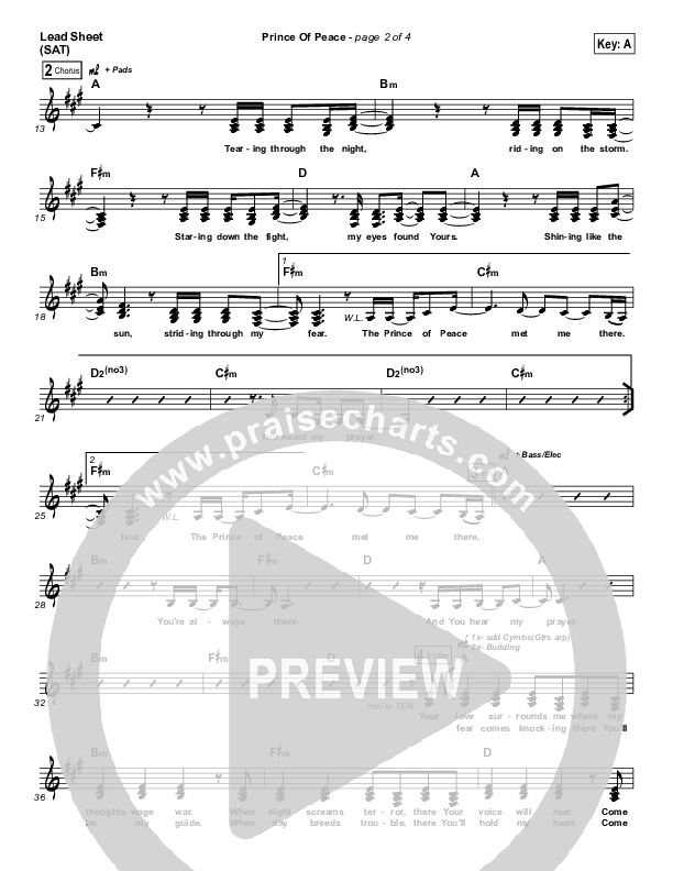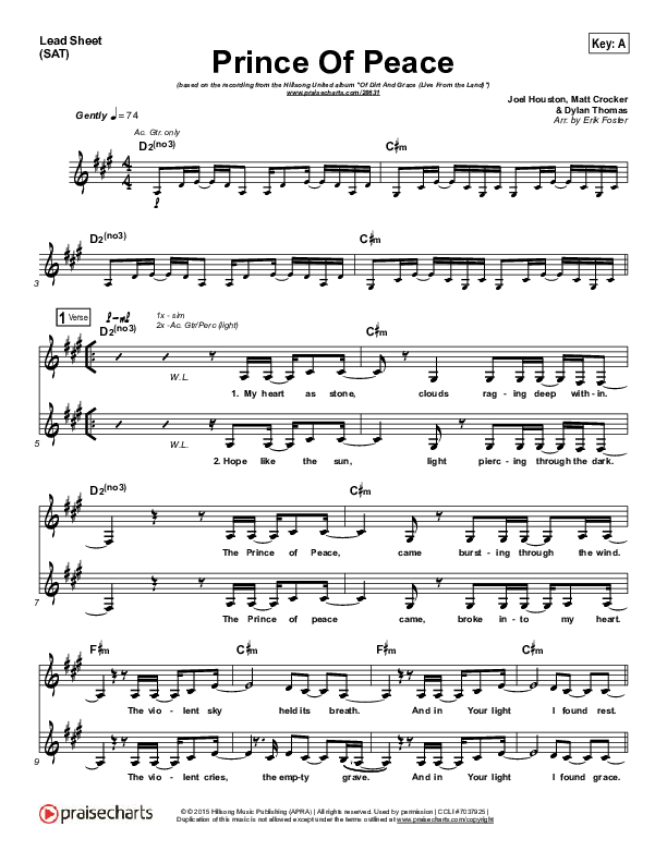 Download the sheet music for Prince Of Peace by Hillsong UNITED, from the album Of Dirt And Grace (Live From The Land). This song was arranged by Erik Foster in the key of A, B.