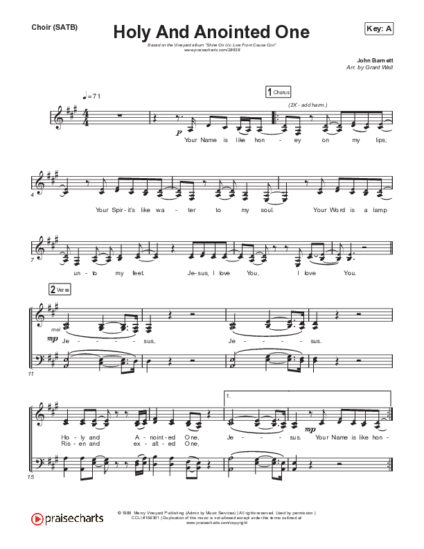 Download the Choir Sheet for Holy And Anointed One by Vineyard Worship / Kyle Howard, from the album Shine On Us: Live From Cause Con. This song was arranged by Vineyard Music in the key of A, Ab.