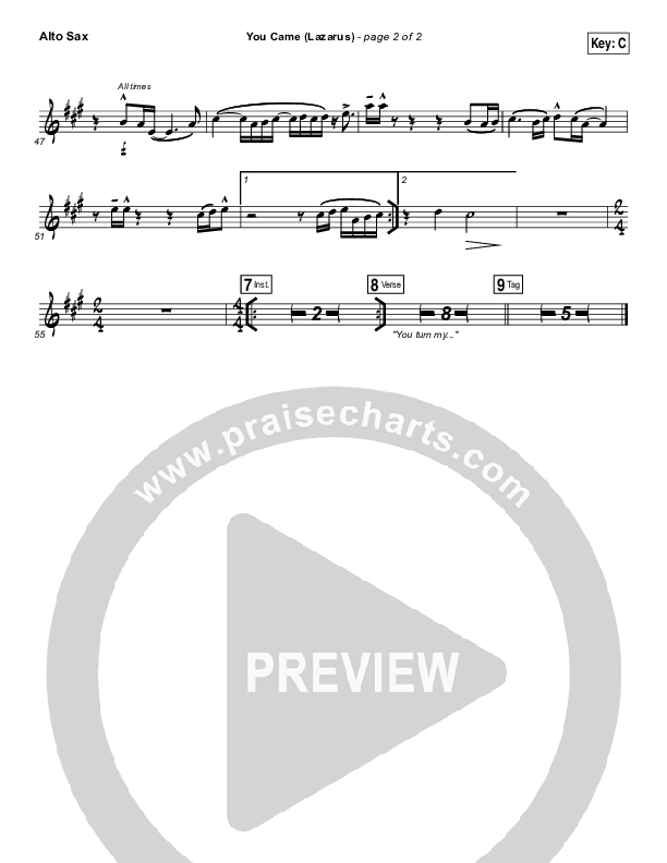 You Came (Lazarus) Alto Sax Sheet Music PDF (Jonathan David Helser / Melissa Helser)