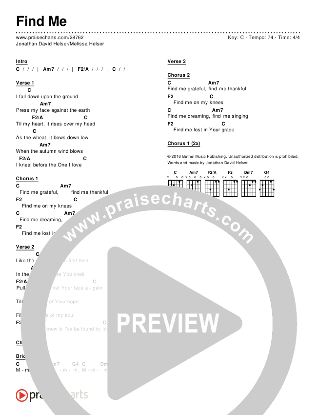Find Me Chords PDF (Jonathan David Helser / Melissa Helser)