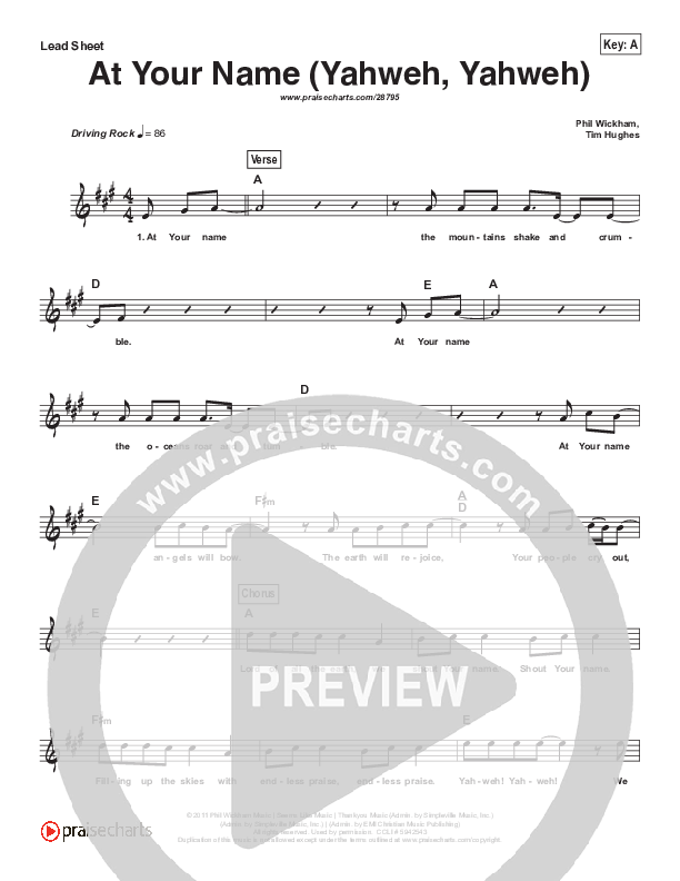Download the sheet music for At Your Name by Phil Wickham, from the album Simplified Worship. This song was arranged by PraiseCharts in the key of A, B, Bb, C, D, Db, E, Eb, F, G, Gb.