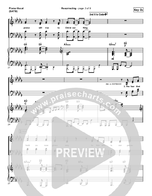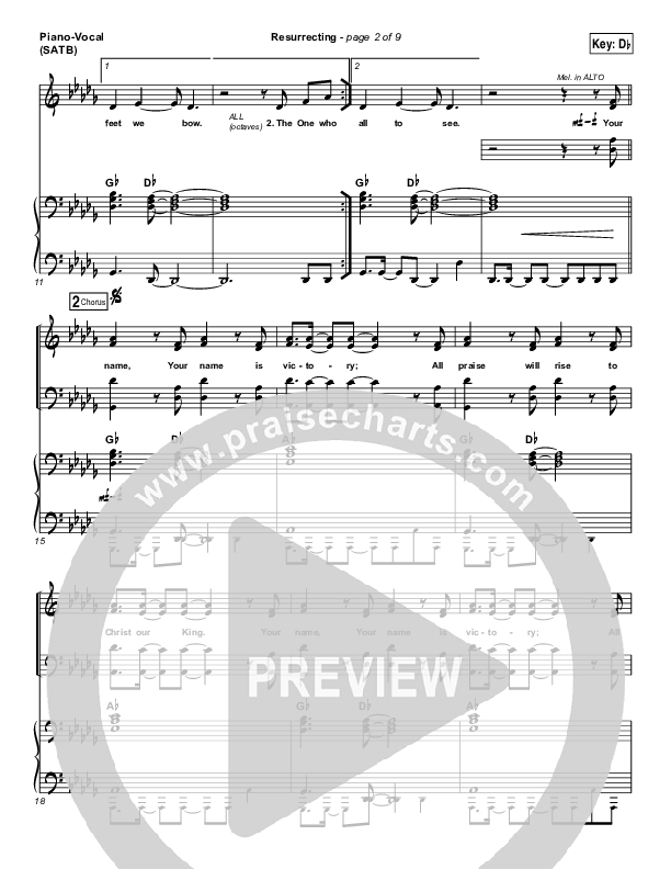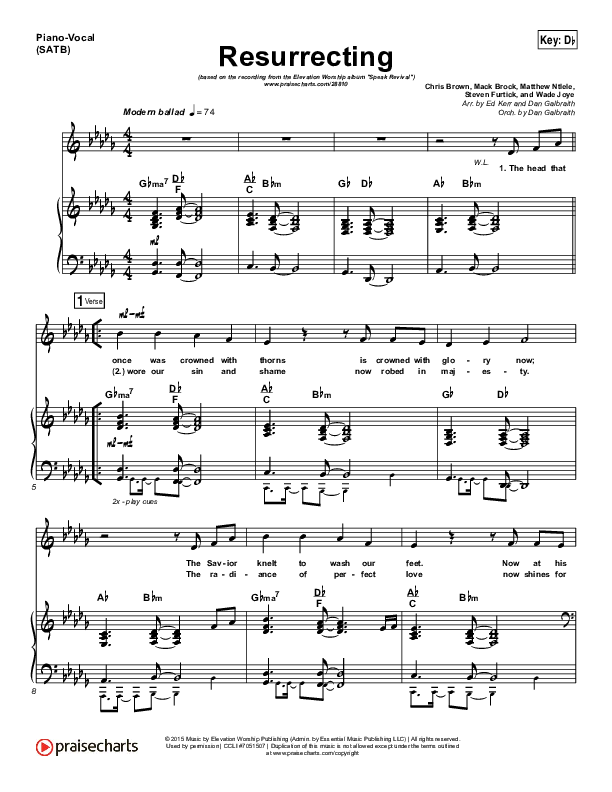 Download the sheet music for Resurrecting (Studio) by Elevation Worship, from the album Speak Revival. This song was arranged by Ed Kerr / Daniel Galbraith in the key of C, Db.