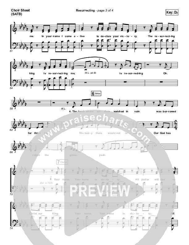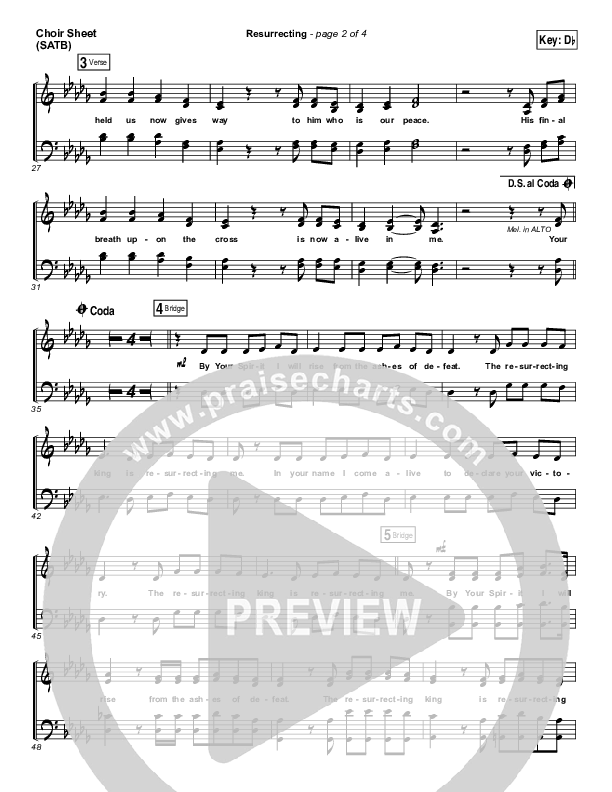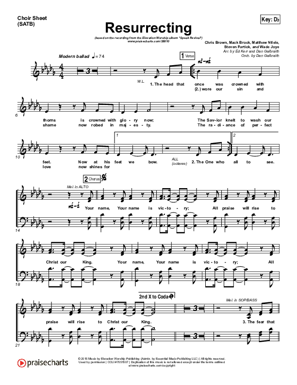 Download the Choir Sheet for Resurrecting (Studio) by Elevation Worship, from the album Speak Revival. This song was arranged by Ed Kerr / Daniel Galbraith in the key of C, Db.