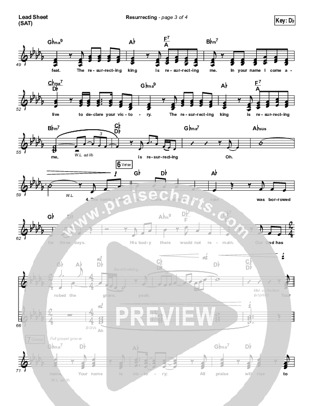 Download the sheet music for Resurrecting (Studio) by Elevation Worship, from the album Speak Revival. This song was arranged by Ed Kerr / Daniel Galbraith in the key of C, Db.