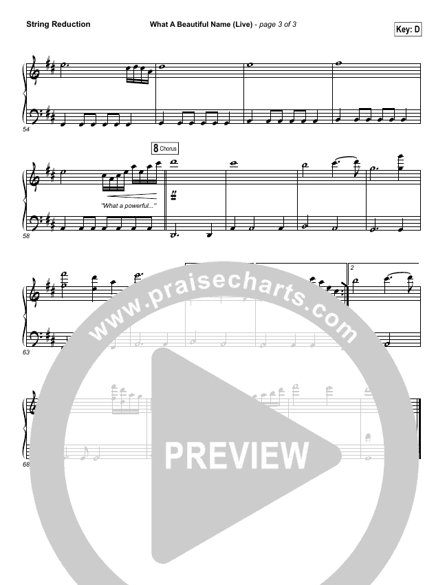 Download the Orchestration string parts for What A Beautiful Name (Live) by Hillsong Worship, from the album Let There Be Light. This song was arranged by Daniel Galbraith in the key of Bb, C, D, Db, E, Eb, F, G.