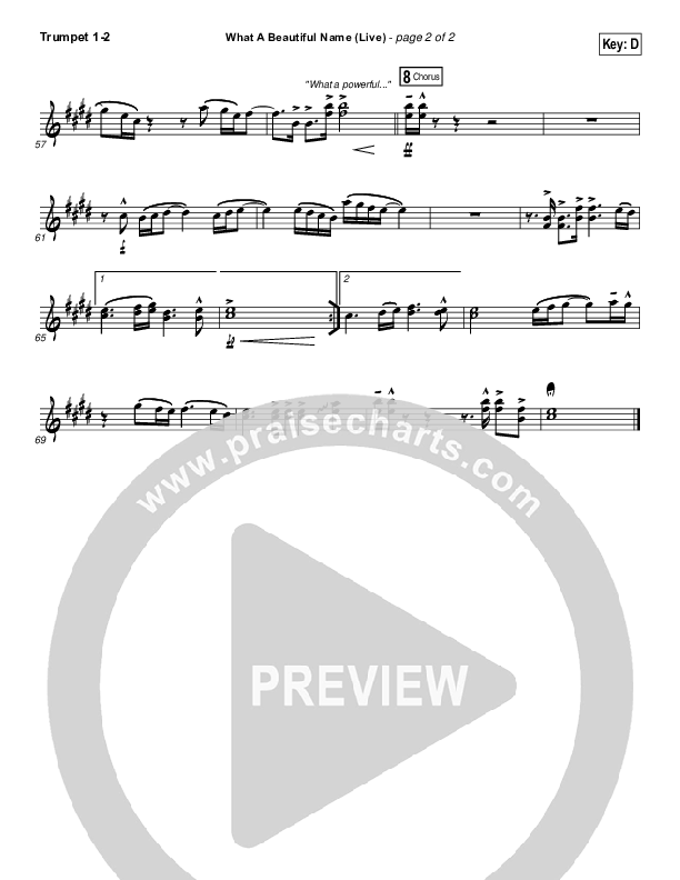 What A Beautiful Name (Live) Trumpet Sheet Music PDF (Hillsong Worship)