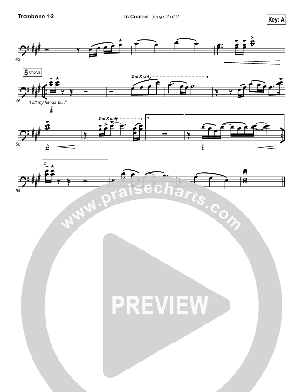 Download the Trombone 1,2 sheet music for In Control by Hillsong Worship, from the album Let There Be Light. This song was arranged by Daniel Galbraith in the key of A, Bb.