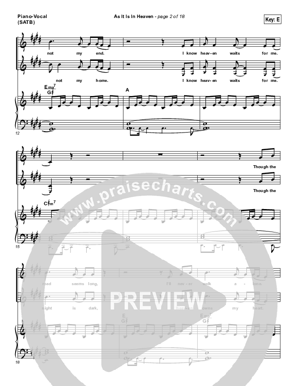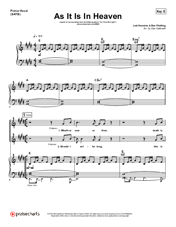 Download the sheet music for As It Is (In Heaven) by Hillsong Worship, from the album Let There Be Light. This song was arranged by Daniel Galbraith in the key of E, F.