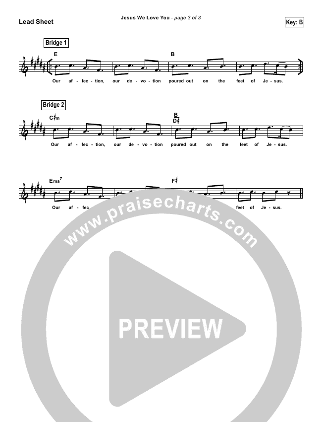Download the sheet music for Jesus We Love You by Bethel Music, from the album Simplified Worship. This song was arranged by PraiseCharts in the key of A, Ab, B, Bb, C, D, E, Eb, F, G, Gb.