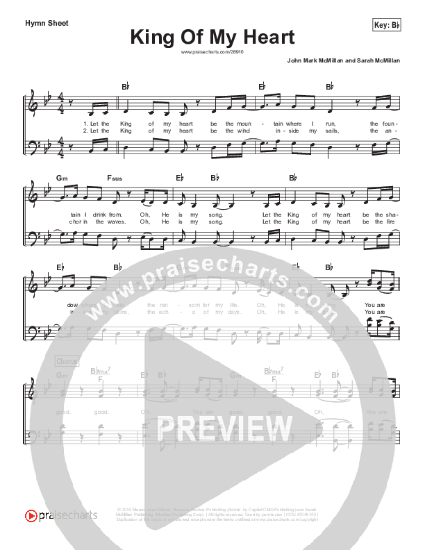 Download the Hymn Sheet for King Of My Heart by John Mark McMillan / Sarah McMillan, from the album Simplified Worship. This song was arranged by PraiseCharts in the key of B, Bb, C, D, Db.