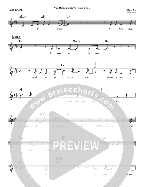 Download the sheet music for You Make Me Brave (Simplified) by Amanda Lindsey Cook / Bethel Music, from the album Simplified Worship. This song was arranged by PraiseCharts in the key of A, Ab, B, Bb, C, D, Db, E, Eb, F, G, Gb.
