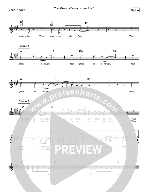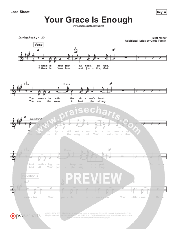 Download the sheet music for Your Grace Is Enough by Chris Tomlin, from the album Simplified Worship. This song was arranged by PraiseCharts in the key of A, Ab, B, Bb, C, D, Db, E, Eb, F, G, Gb.