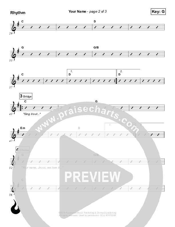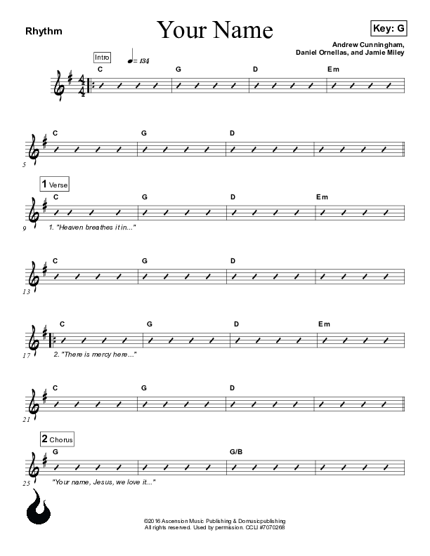 Download the Rhythm Chart for Your Name by Ascension Worship, from the album Songs Of Ascension Worship. This song was arranged by Ascension Worship in the key of G.