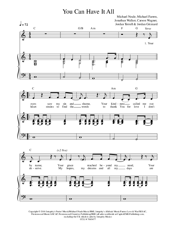 Download the sheet music for You Can Have It All by Prestonwood Worship / Michael Neale, from the album Songs Of The People. This song was arranged by Integrity Music in the key of C.