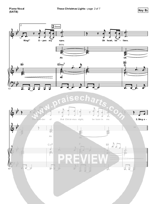 Download the sheet music for These Christmas Lights by Matt Redman, from the album These Christmas Lights. This song was arranged by Erik Foster / Daniel Galbraith in the key of A, Bb.