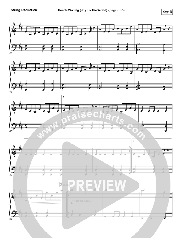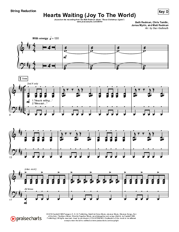 Download the Orchestration for Hearts Waiting (Joy To The World) by Matt Redman, from the album These Christmas Lights. This song was arranged by Daniel Galbraith in the key of D, E.