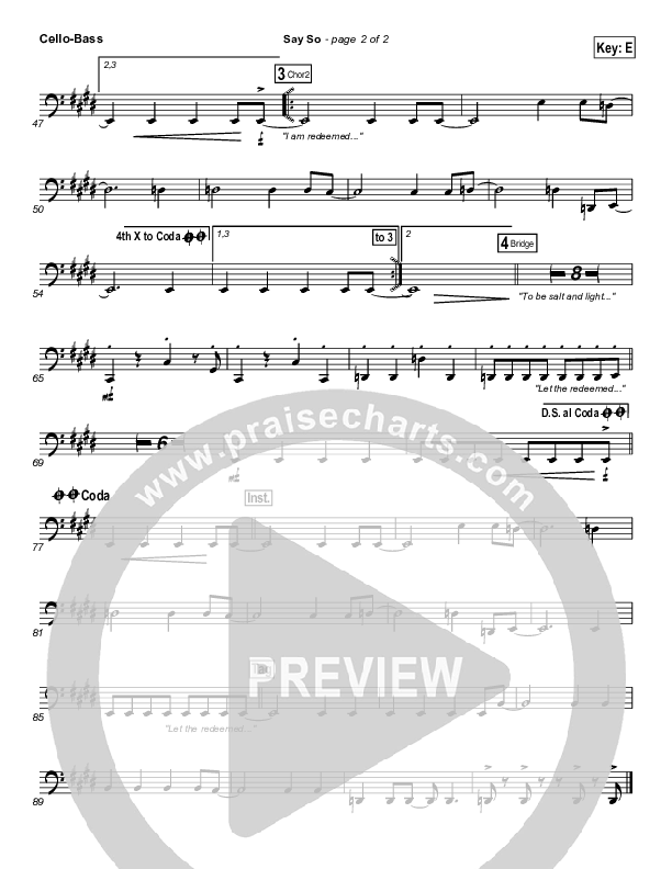 Download the Orchestration for Say So by Israel Houghton, from the album A Deeper Level. This song was arranged by Daniel Galbraith in the key of E, F.