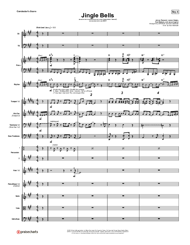 Download the Orchestration for Jingle Bells by Lauren Daigle, from the album Behold. This song was arranged by Jeff Moore / Daniel Galbraith in the key of A, Bb.