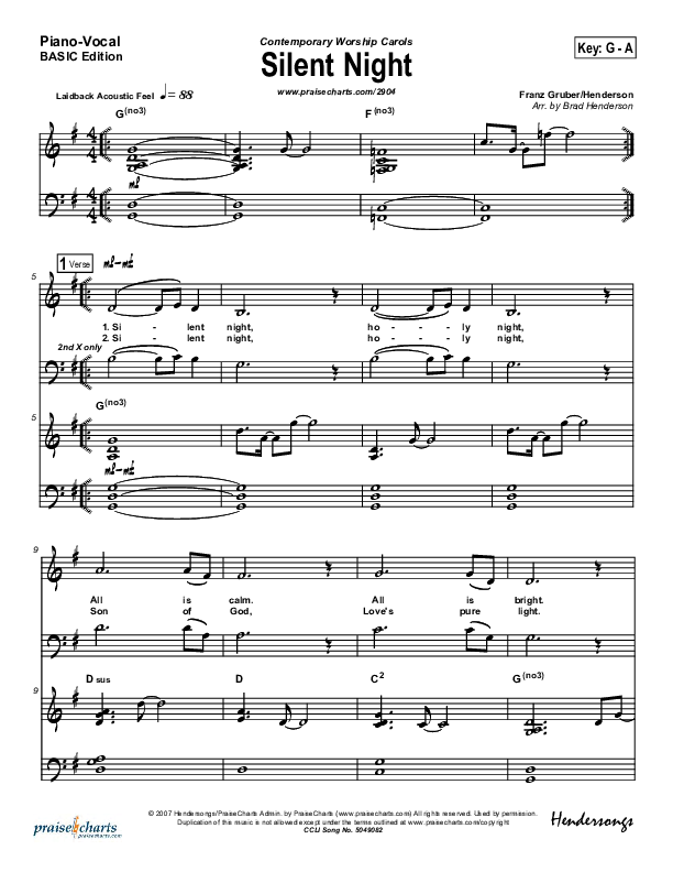 Download the sheet music for Silent Night by Rosie Wyse / Joel Hill, from the album Contemporary Worship Carols.