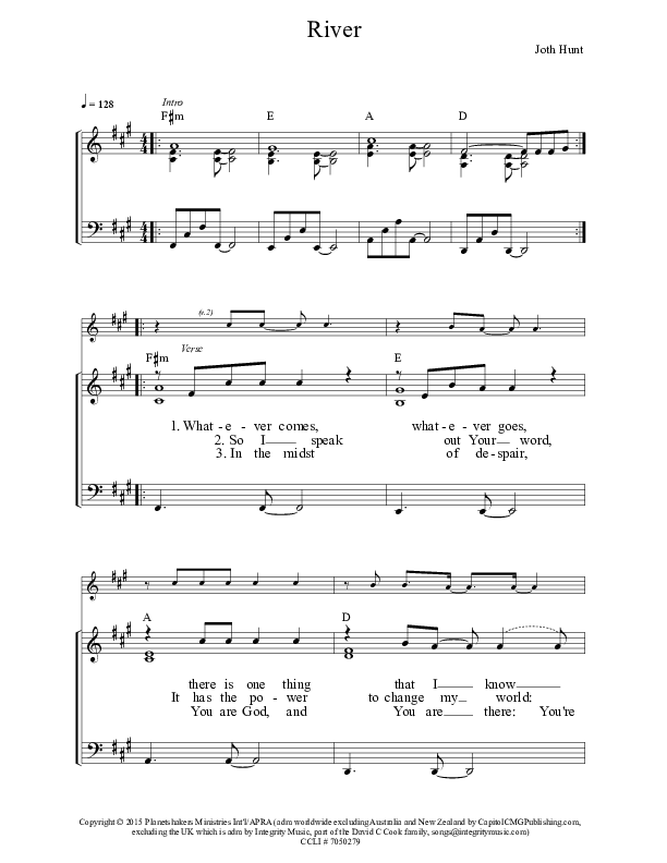Download the sheet music for River by Planetshakers, from the album Overflow. This song was arranged by Integrity Music in the key of A.