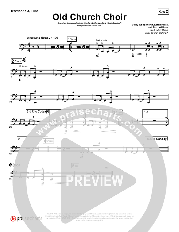 Old Church Choir Trombone/Tuba Sheet Music PDF (Zach Williams)