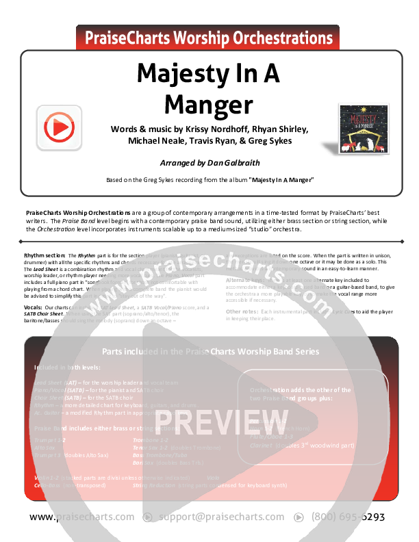 Download the Orchestration for Majesty In A Manger by Greg Sykes, from the album Majesty In A Manger. This song was arranged by Daniel Galbraith in the key of A, Bb.