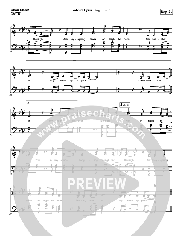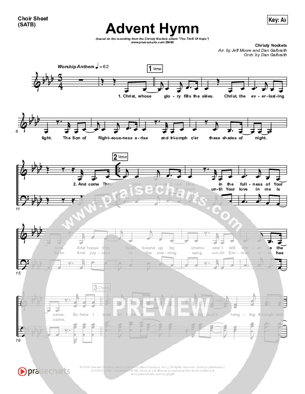 Download the Choir Sheet for Advent Hymn by Christy Nockels, from the album The Thrill Of Hope. This song was arranged by Jeff Moore / Daniel Galbraith in the key of A, Ab.