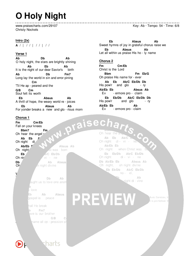Download the PDF Chord Charts for O Holy Night by Christy Nockels, from the album The Thrill Of Hope. This song was arranged by Ed Kerr / Daniel Galbraith in the key of Ab, G.