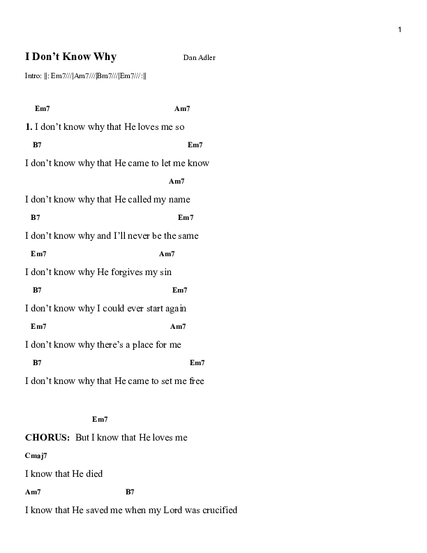 Download the PDF Chord Charts for I Don't Know Why by Heart Of The City, from the album Healing In You.