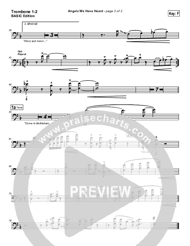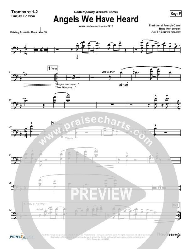 Download the Trombone 1,2 sheet music for Angels We Have Heard On High by Jon Ward, from the album Contemporary Worship Carols. This song was arranged by Brad Henderson in the key of E, F.
