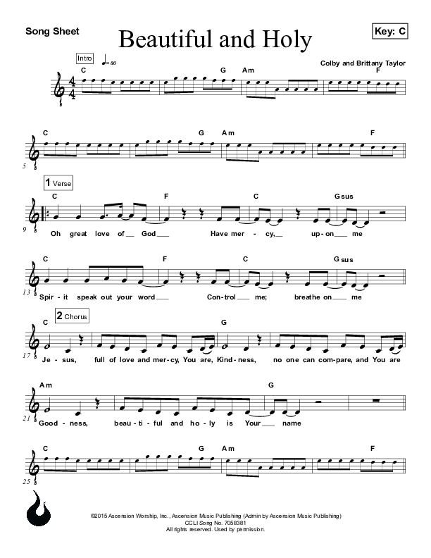 Download the sheet music for Beautiful And Holy by Ascension Worship, from the album Songs Of Ascension Worship. This song was arranged by Ascension Worship in the key of C.