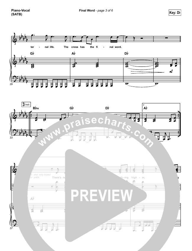 Download the sheet music for The Cross Has The Final Word by Wells, from the album Final Word. This song was arranged by Dustin Loehrs / Daniel Galbraith in the key of Bb, C, Db.