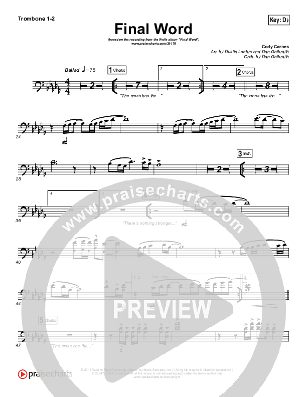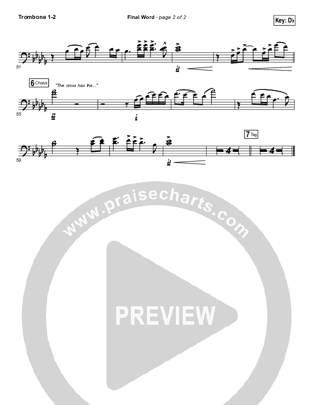 Download the Trombone 1,2 sheet music for The Cross Has The Final Word by Wells, from the album Final Word. This song was arranged by Dustin Loehrs / Daniel Galbraith in the key of Bb, C, Db.