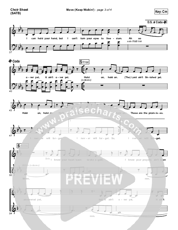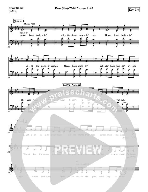 Download the Choir Sheet for Move (Keep Walkin) by TobyMac, from the album This Is Not A Test. This song was arranged by Jeff Moore / Daniel Galbraith in the key of Bm, Cm.