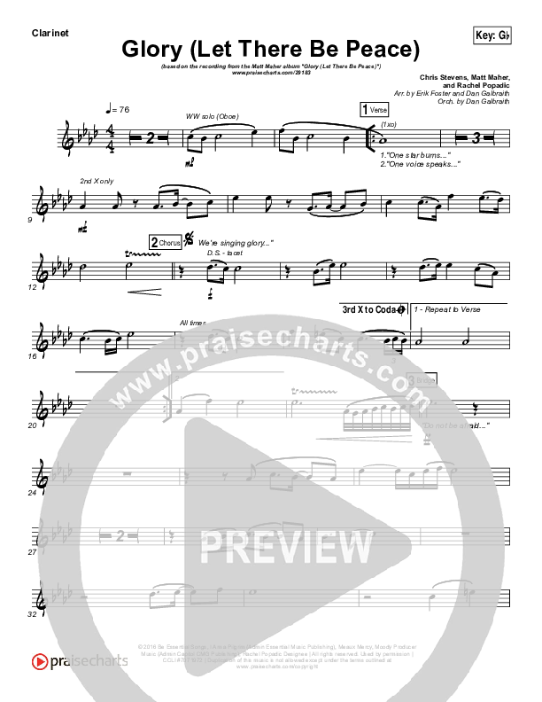Download the Orchestration for Glory (Let There Be Peace) by Matt Maher, from the album Glory (Let There Be Peace). This song was arranged by Erik Foster / Daniel Galbraith in the key of F, Gb.