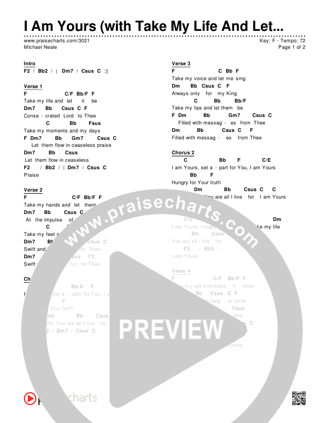 I Am Yours (with Take My Life And Let It Be) Chords PDF (Michael Neale)